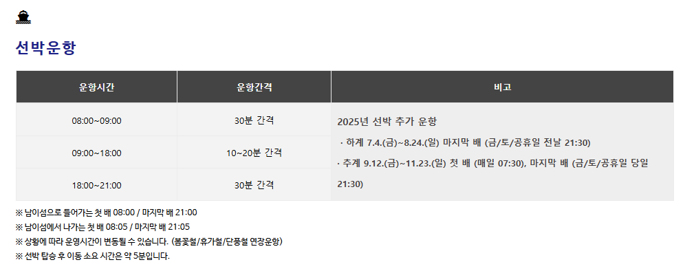 두 번째는 전통적인 왕복 선박을 이용하는 방법이에요. 일반 요금은 19,000원이지만 남이섬 입장권 할인 혜택을 활용하면 더 저렴하게 구매 가능해요. 네이버 예약을 이용하면 온라인 할인이 적용되니 꼭 체크하세요. 아침 8시 이전이나 저녁 늦게 매표 시에도 특별 우대 할인도 받을 수 있답니다.