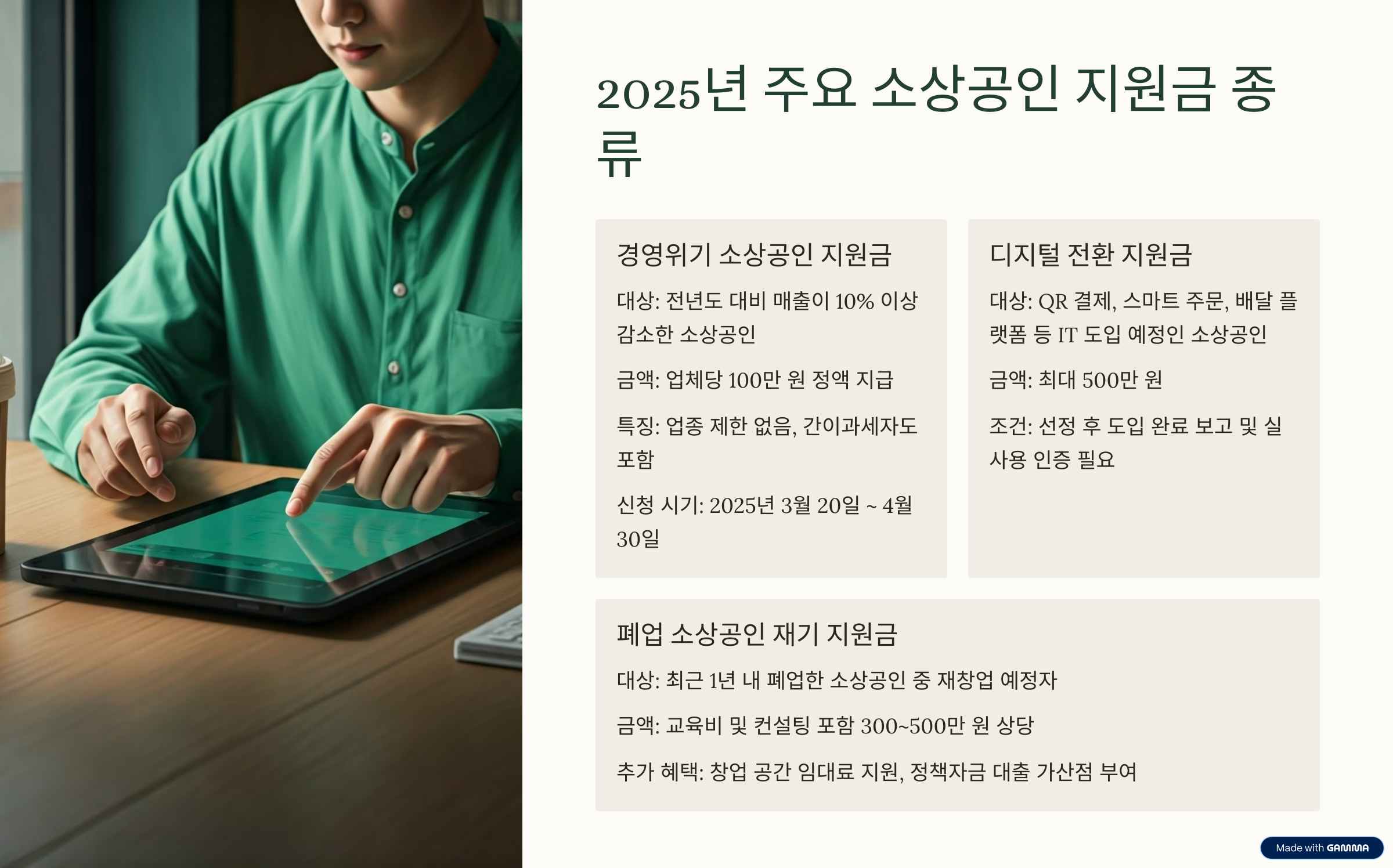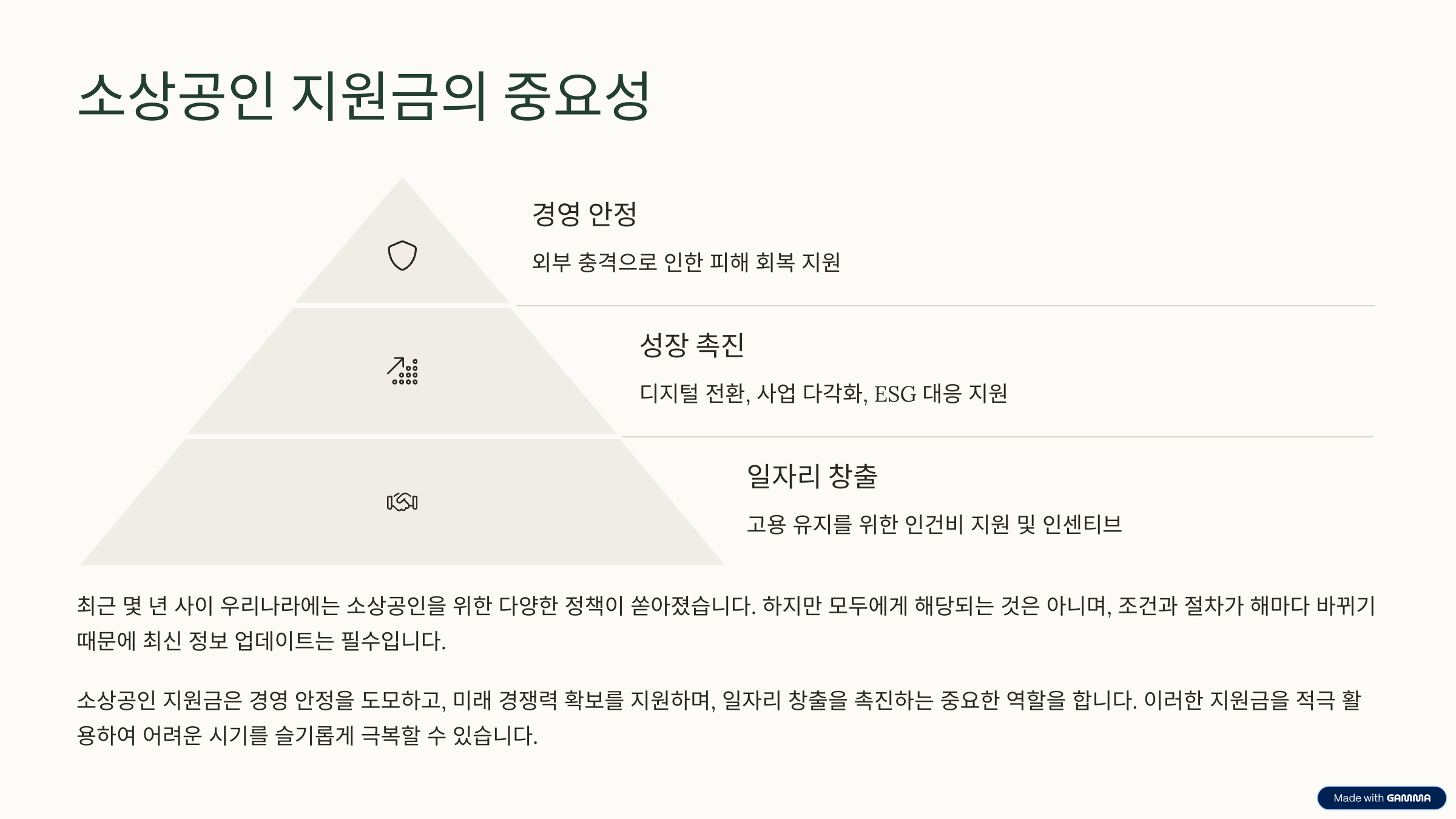 고물가, 고금리, 소비 위축의 삼중고 속에서도 오늘도 묵묵히 가게 문을 여는 소상공인 여러분. 정부와 지자체가 마련한 다양한 소상공인 지원금 제도를 제대로 알고, 똑똑하게 챙기는 것이야말로 버티고 성장할 수 있는 지름길입니다.