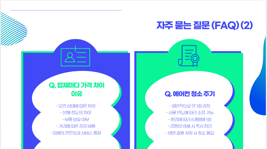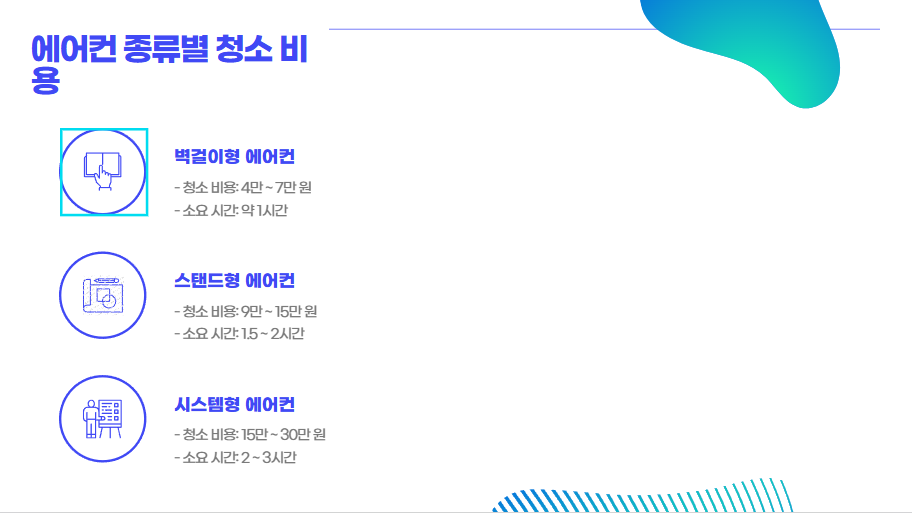 | 에어컨 종류 | 청소 비용 | 소요 시간 |