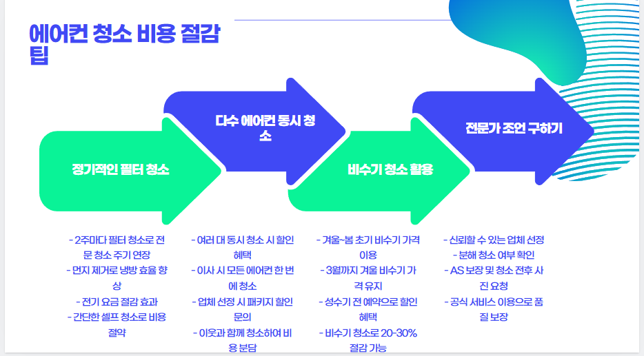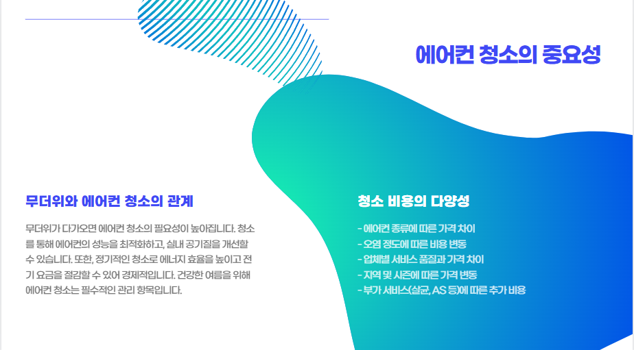 하지만 에어컨 청소 비용은 업체마다 다르고, 종류나 오염 정도에 따라 가격 차이도 큰 편입니다.