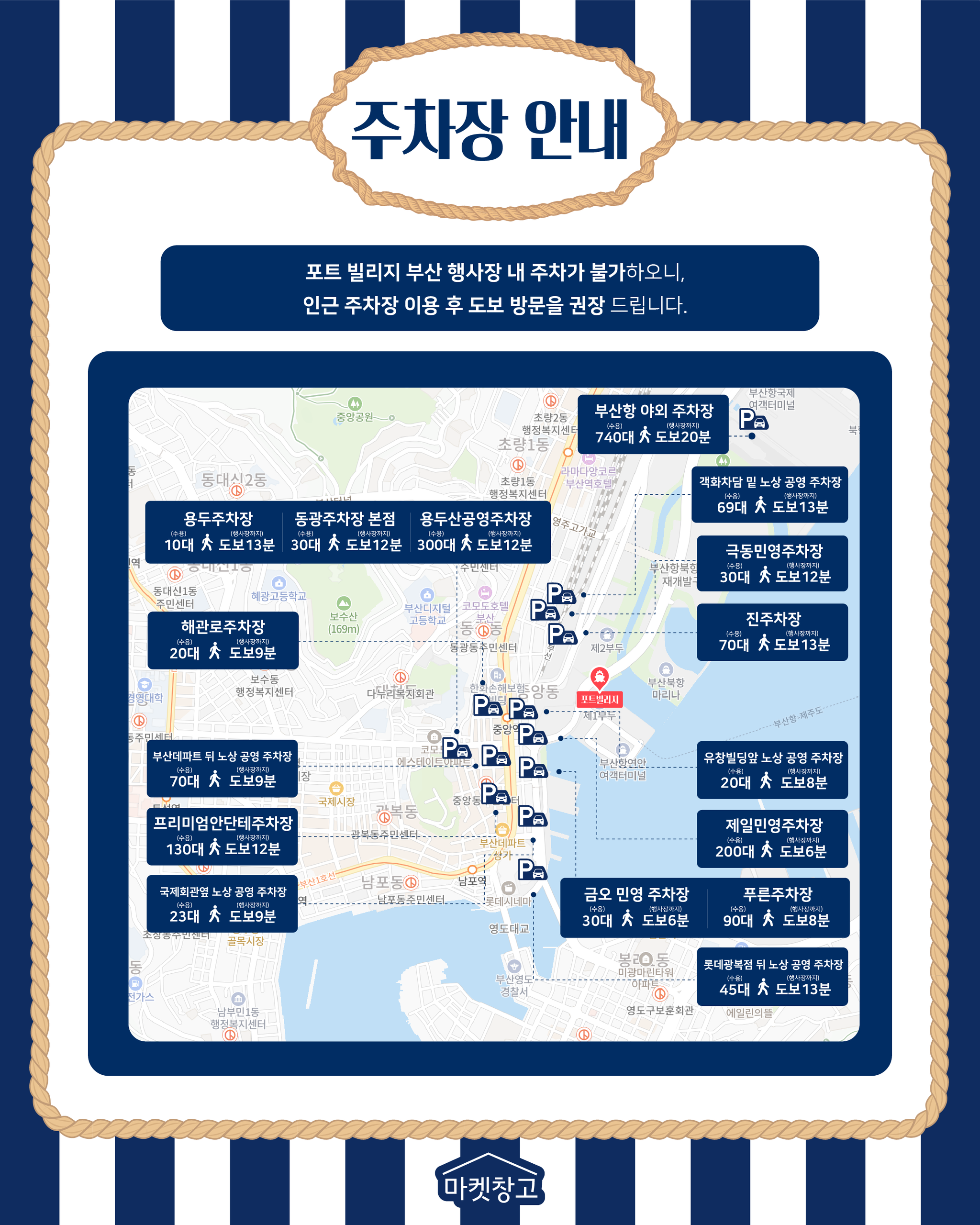 자동차 이용 시에는 부산광역시 중구 중앙동 4가 15-33 부산항 제1부두를 내비게이션에 입력하면 됩니다. 인근에 주차장이 있지만 행사 기간에는 다소 혼잡할 수 있으니 대중교통 이용을 추천드려요.