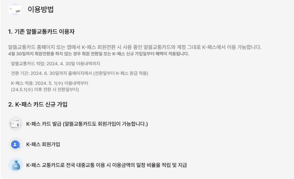 - 적용 교통수단: 버스, 지하철 등(※ 고속버스, 택시 제외)